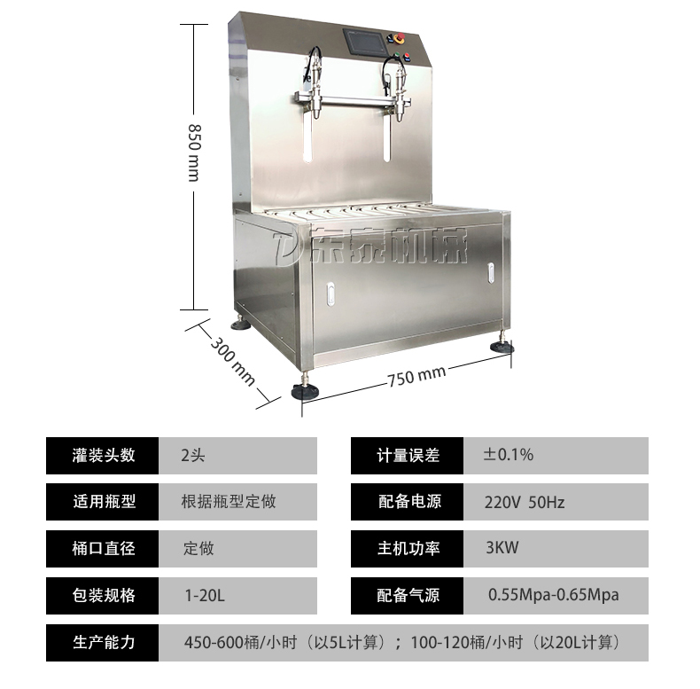 半自動油脂灌裝機可以灌裝1-20L不等的各類食用油、潤滑油等,并且半自動油脂灌裝機體形較小,移動方便,多適用于中小型 的油脂生產(chǎn)廠家,幫助廠家實現(xiàn)更快、更的油脂灌裝。半自動油脂灌裝機的兩個頭由兩個泵分別控制,灌裝量更加并且速度也大大提高。單頻變頻器調(diào)速,克服分布不均的現(xiàn)象。有極高的穩(wěn)定性,當某一站管道堵塞時,不會影響其他站,造成灌裝精度的變化。