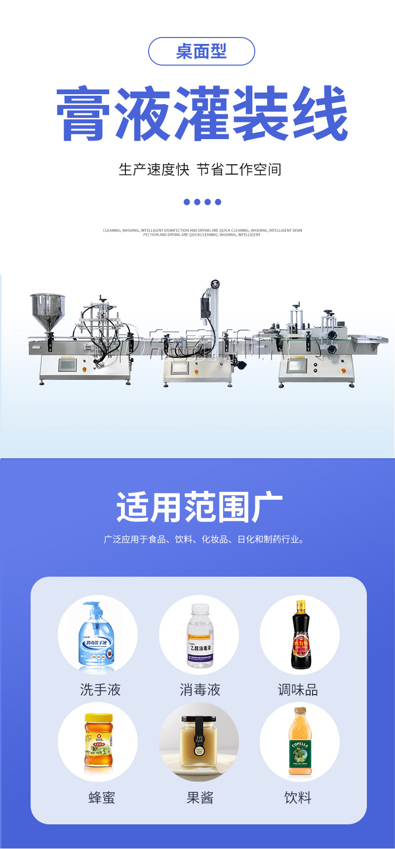 桌面型自動灌裝機是我公司的灌裝封口設備系列,適用于灌裝各種圓形,異型瓶和小瓶。 洗手液灌裝機主要適用于各種注射劑,消毒劑,口服液和糖漿,酒精和各種醫用液體的灌裝。 它廣泛用于食品,制藥,化學工業和科學研究領域。