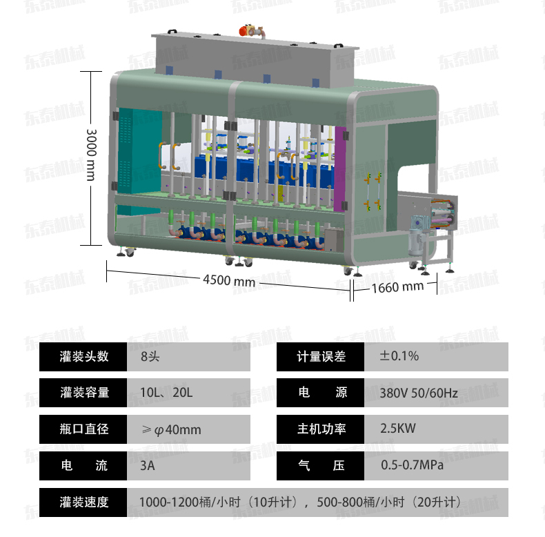 該系列灌裝機(jī)采用容積式計(jì)量灌裝原理,多項(xiàng)專利認(rèn)證,適用于各種規(guī)格(1-5L)的液體肥等液體灌裝。設(shè)備采用伺服驅(qū)動活塞計(jì)量,保證了 1‰的灌裝精度,在保證灌裝精度的同時(shí),提高了 20%-35%的灌裝速度,操作簡單,維護(hù)方便,節(jié)省人工成本,生產(chǎn)效率更高。